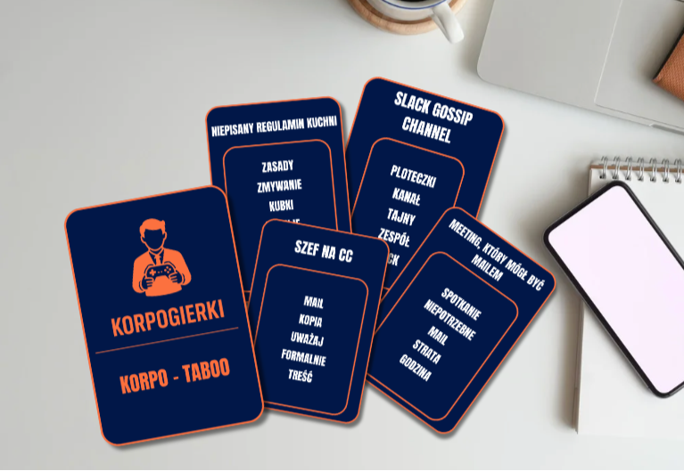 KORPO TABOO to 100 kart czystej, nieskrępowanej satyry na życie w korporacyjnej dżungli. To jak memy o pracy, tylko w formie gry, którą możesz legalnie przynieść na firmową integrację.